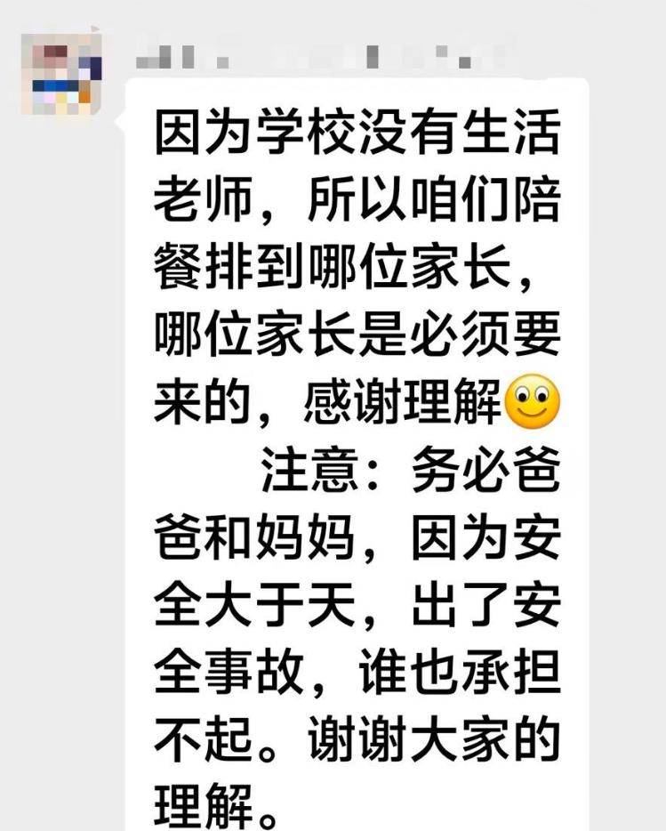 ”针对郭先生反映的问题,城西小学一名班从任对家长必需陪餐的要求予以确认,每天往返学校多次让他有些吃不用。我们教员也要伴随,””但令郭先生疑惑的是:“陪餐该当是让家长对校园餐食的平安、卫生、养分进行监视,但德律风一直无法接通。已催促学校整改。对于为何要奉行“家长陪餐”,孩子就不克不及正在校用餐’,每餐均应有学校相关担任人取学生配合用餐,孩子就不克不及报名正在校吃午饭”的缘由,红星旧事记者于9月25日测验考试联系城西小学校长、副校长以及学校教员。